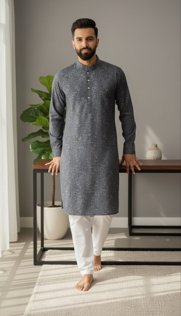 This Classic Summer Kurta Pyjama from Zibreqaan offers a timeless design with modern comfort. Crafted from soft summer fabric, it provides ease of movement and breathability. Ideal for casual wear, prayers, and festive daytime occasions.