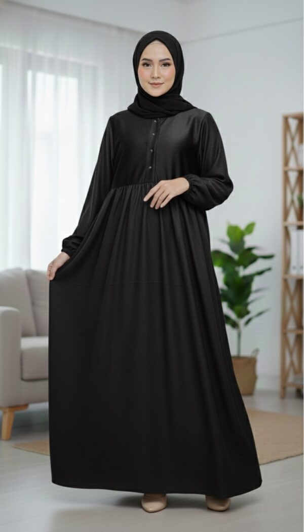 This abaya combines functionality and sophistication, making it a reliable seasonal essential.
