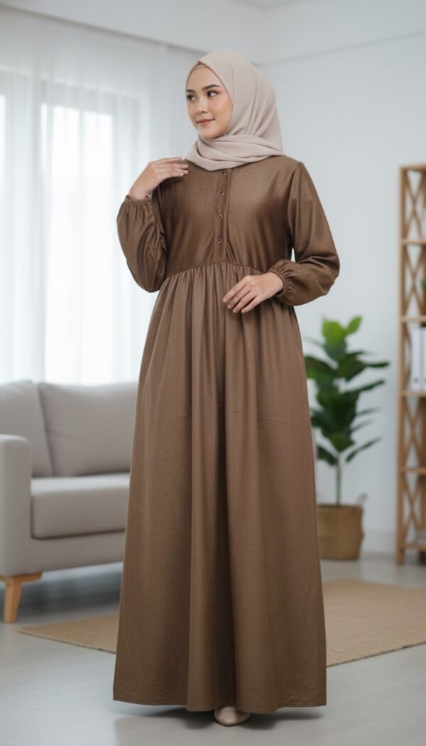 This abaya combines functionality and sophistication, making it a reliable seasonal essential.